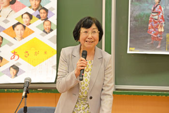 文学部授業でNHK連続テレビ小説『あさが来た』の原作者 古川智映子さんが講演