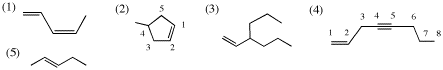 (3)と(4)(不飽和炭化水素の炭素数の違い)は区別できない。