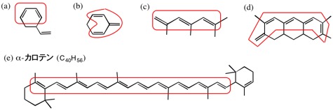 (1)~(4)で与えられている構造はそれぞれ環どうしのつながり方が違っているので、(5)を考える上でヒントになるはずである。