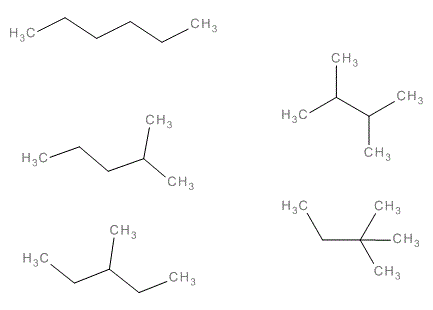 A: 飽和炭化水素を例として記します。まず炭素数から考えられる母核(命名法のときと同じ。直鎖・環)の種類をできるだけ見つけます。そして,各母核について,側鎖(枝分かれ)の位置と種類が異なる構造をできるだけ描きます。最後に,同じ構造が重複していないか検討します。迷ったときは,命名法規則に従って命名します。同じ名前になるものは(当然)同じ構造です(BIOVIA Drawで描いていると容易にチェックできます)。有機化学のページのQ&Aの「結合と構造」(6)もご覧下さい。