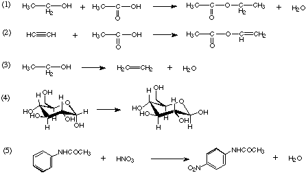 (1) 置換(縮合) (2) 付加 (3) 脱離 (4) 異性化 (5) 置換