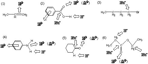 3. 矢印は電子の流れる方向を示している。授業に出ていなくて何をすべきかわからなかった人は、テキスト(プリント)10-3,4ページを参照して下さい。これがわからないと先に進めません。 10.4 有機化学反応の実例