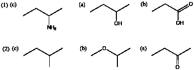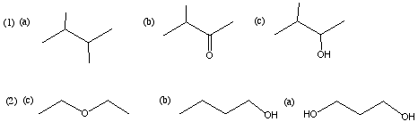 (b) それぞれ、次のような構造式と対応する。