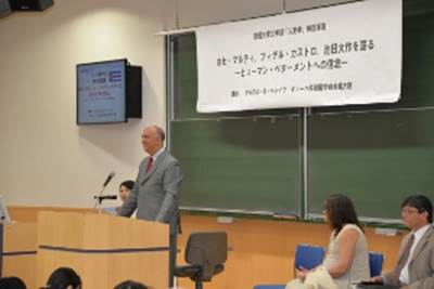 文学部の「人間学」の授業で、キューバ共和国のカルロス・ミゲル・ペレイラ・エルナンデス特命全権大使が講演しました