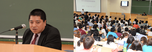 平成26年年7月10日、文学部「人間学」の特別講師として作家・佐藤優氏が登壇した。講演では外交官時代の経験などを通して、創立者池