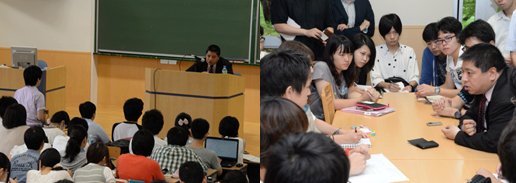 田大作先生の思想と行動への深い賛意を示すと共に、創価大学の人間教育の精神性に対する共鳴などを熱く語った。講演終了後には、活発な質疑応答が行われ た。「人生の転機となった経験は?」「出版業界で働くためには?」「真の平和を築くために今、何ができるのか」など。授業終了後も会場を変えて、佐藤氏と